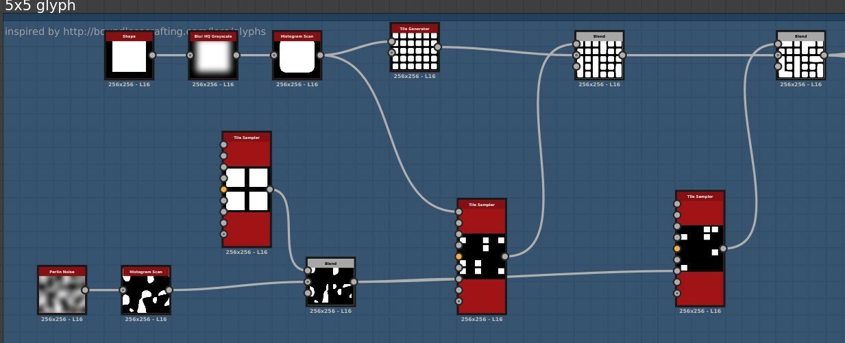 The tile samplers are offset so that they fill in the spaces in between the square grid. I use a perlin noise to drive which places get filled in, so that it feels like it has more structure to it.