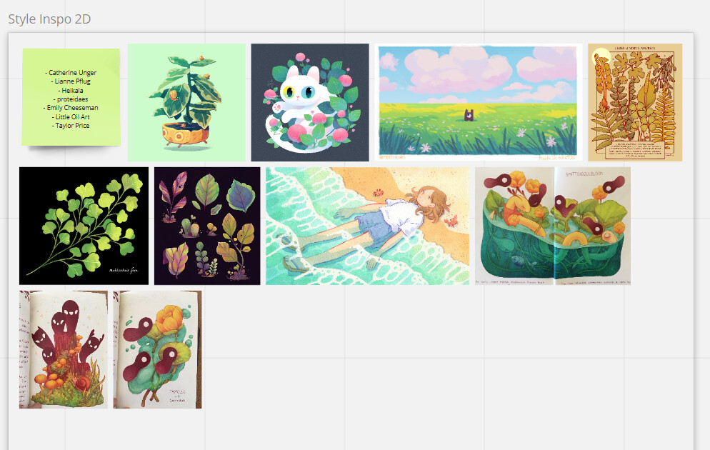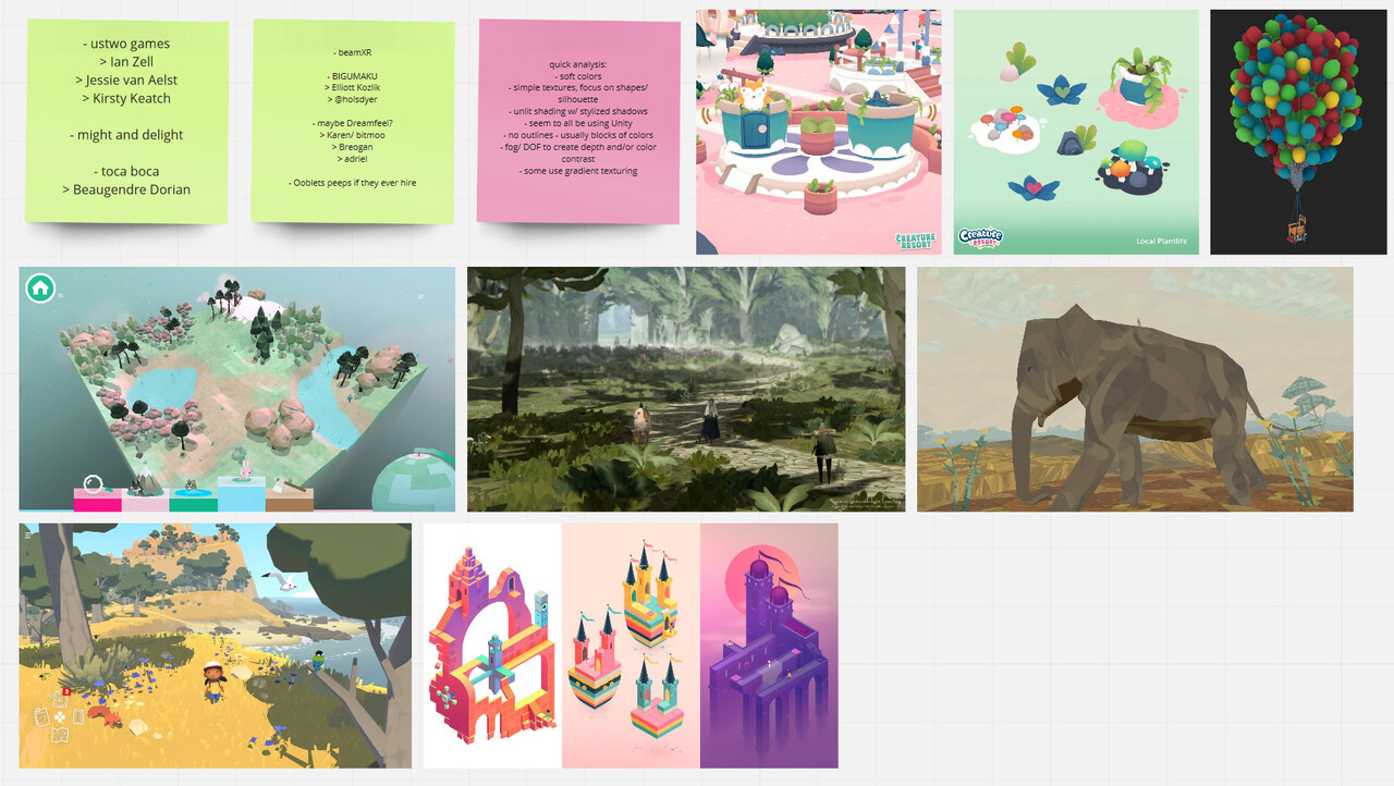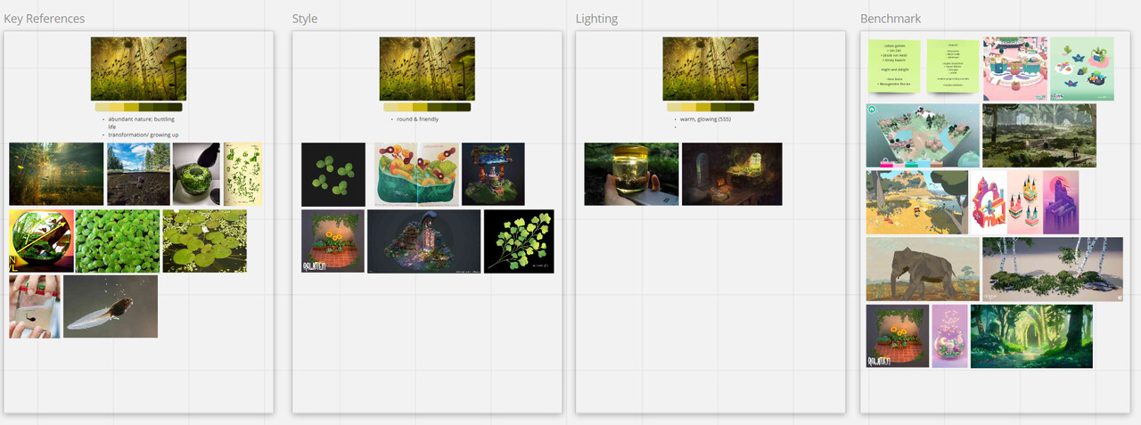 I included a key image and preliminary color palette in most of the boards (got this trick from Polygon Academy).